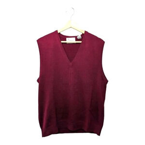 VTG Ingo Virgin Wool Blend V Neck Sweater Vest Mens Size L Burgundy Hong Kong