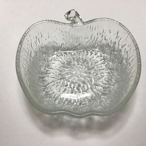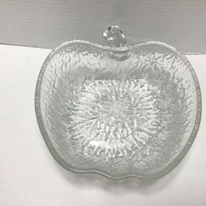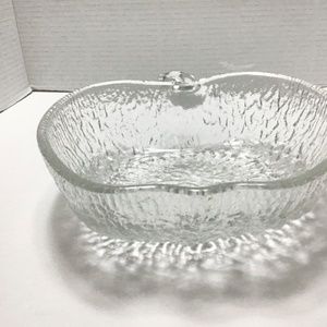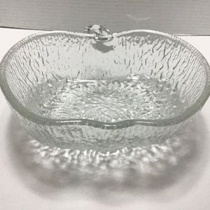 VTG Italian Glass Crystal Ice bowl, clear apple shape tree bark textured
