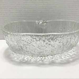 Nice, clear glass dish with crystal ice textured exterior, and smooth interior.