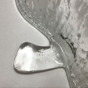VTG Italian Glass Crystal Ice bowl, clear apple shape tree bark textured glass stem handle Embossed ITALY
