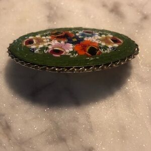 Gorgeoise vintage (turn off the 20th century) Italian micro mosaic glass detail floral flower brooch - silver colour metal