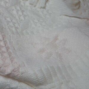 VTG JORDAN MARSH made in SPAIN baby blanket blush flowers girl fringe embossed