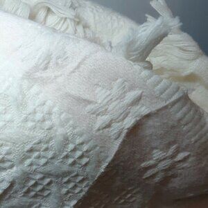 White with the softest blush pink shade accenting and fringe edges