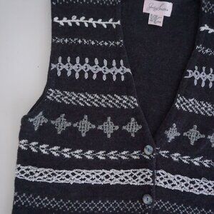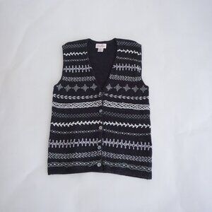 VTG Jacklyn Smith Black White Knit Tribal Print Geometric Vest Grandmacore L