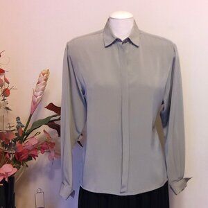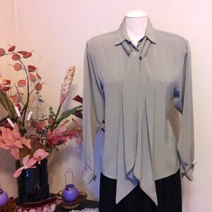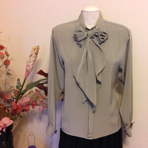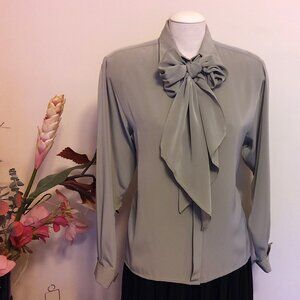 VTG Jaeger Bow Tie Neck Blouse Light Gray Long Sleeve Shirt Women’s Dressy Elegant Top Size 16 could fit for 14 or 16