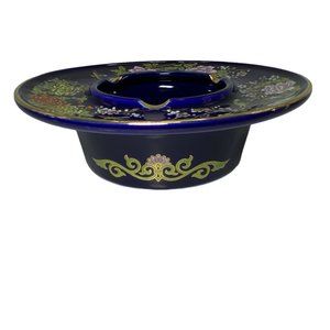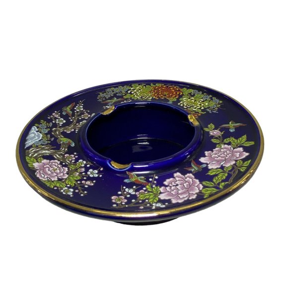 VTG Japan Cobalt Blue Ceramic Ashtray Trinket Dish Floral Collectible