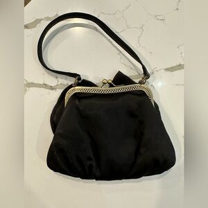 VTG Jeanne Lottie Black Satin Gold Trim and Jeweled Large Bow Strap Small Purse