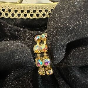 VTG Jeanne Lottie Black Faux Satin Gold Trim and Jeweled Large Bow Strap Small Purse
