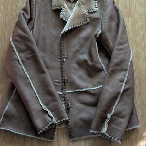 Gorgeous Faux Suede and fur trim jacket with lapel stitching