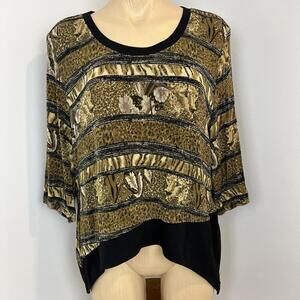 VTG Joseph Ribkoff Couture Women's Medium Animal Print Brown Black 3/4 Sleeve Blouse Top