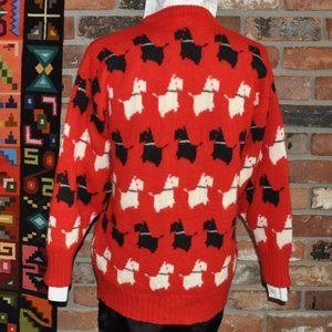 VTG KNIT PICS Scotland 100% WOOL Red Black White Scottie TERRIER DOG Sweater 38