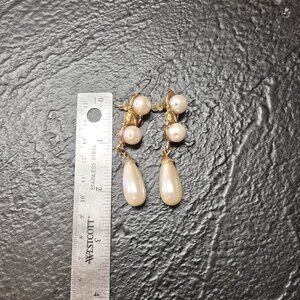 VTG Korean Faux Pearl Drop Earrings Gold Tone Pierced Bridal Dangles Regencycore