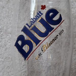 VTG LABATT BLUE PILSNER DRINKING GLASS 9" 20 OZ. GOLD RED CAN. MAPLE LEAF GUC