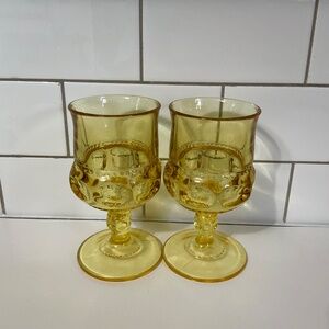 VTG Large Indiana Glass Amber Kings Crown Thumbprint Set of 2