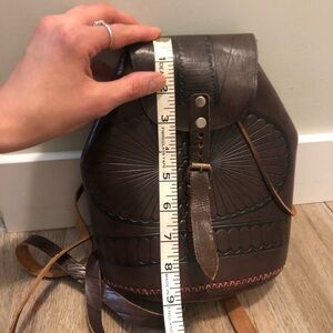 Vtg Leather Mini Bag BackPack Buckles Long Straps Tooled Starburst Pattern