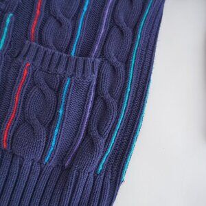 VTG Leo Chevalier Sport Navy Multicolor Stripe Cable Net 100% Cotton Cardigan M