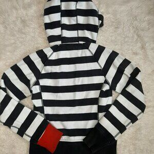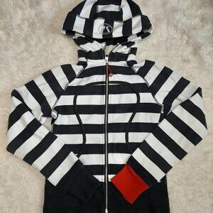 Check out this VTG Lululemon Women's Beetlejuice Black and White Stripped Hoodies Scuba in pre-owned condition, some wear and stains on the jacket but no rips on it.