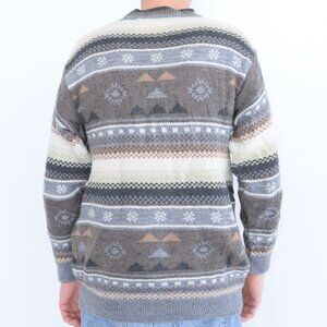 VTG Marks & Spencer By St Michael Blue Taupe Geometric Shape Crewneck Sweater M
