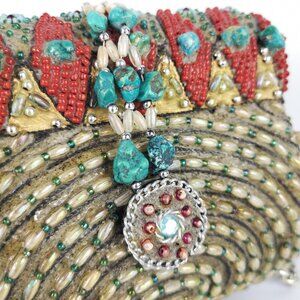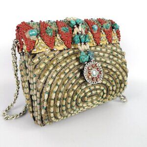 VTG Mary Frances Embellished Beaded Small Shoulder Bag Red Blue Green Silver