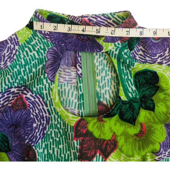 VTG Maxi Dress Psychedelic Flower Power Flared Sleeves UK Size 14 Jerseyfield