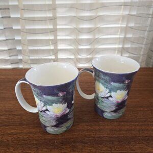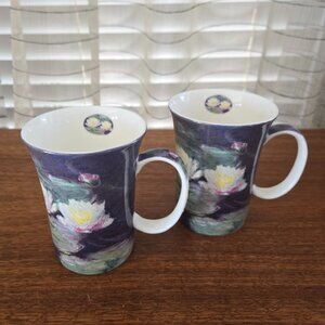 VTG McIntosh Water Lilies Monet Mugs Set of 2, Fine Bone China Coffee Tea 4 3/8"