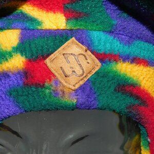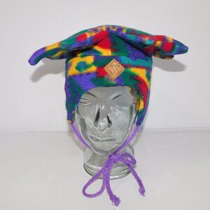 This vintage Unisex Small Merkley Headgear Multicolour Abstract Fleece Jester Winter Snowboarding Ski Hat is in great clean bright condition. Hat is 100% Polyester - Hand wash - Air Dry. Features Purple chin tie.