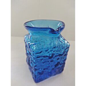 VTG Cobalt Blue Pilgrim Glass Pitcher - Nugate Surface - Clear Handle 4"