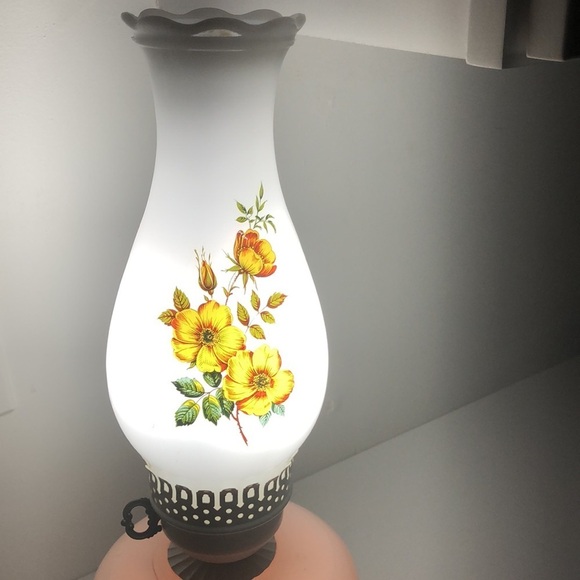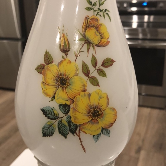 VTG Milk Glass Floral Hurricane Gone With The Wind Lamp WORKING 16” white yellow
