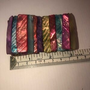 Vtg Mother of Pearl Rainbow Multi Colour Dyed Stick Stretch Bracelet 6”