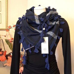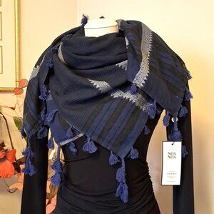 VTG NEW NOA NOA 100% Cotton Large Square Classic Luxury Navy Blue Scarf for Women Shawls Wraps Headscarf and Neck- Hair Wraps
