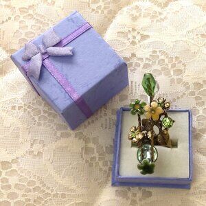 VTG NWOT Monet Girls Women Floral Design Cubic Zirconia Adjustable Vintage Ring