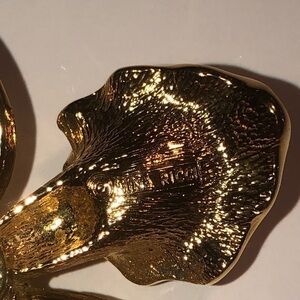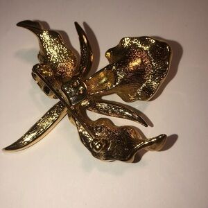 Excellent condition Nina Ricci gold tone Iris brooch w Pearl accent 2.5”