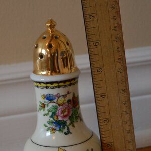 Elegant porcelain Sugar shakers featuring a vintage floral design and gold tops. Notable for their aesthetic appeal and functionality.