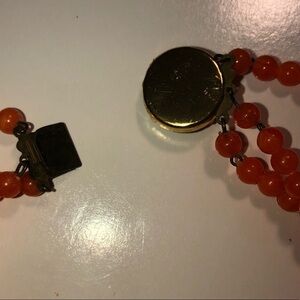 Vtg Orange Swirled Lucite Round Graduated Bead Multi Strand Necklace 18”
