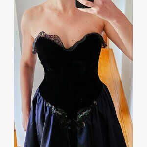 VTG 80s Night Moves NY Party Dress 6 Black Velvet Corset Purple Dark