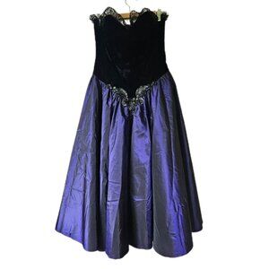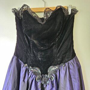 VTG Party Dress 6 Black Velvet Corset Purple Skirt Dark Princes Goth Halloween
