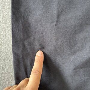 in very good condition except there is a tear on the bottom right leg near the ankle