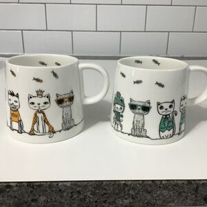 VTG Paws Cafe BIA Cordon Bleu Whimsical Cat Mugs Set of 2