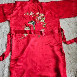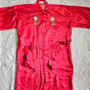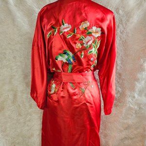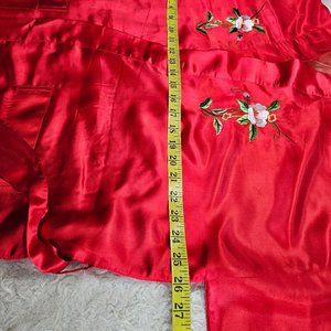 Check out this Vintage Pearls Women's Red Silk Asian Floral Hand Embroidery Long Bathrobe Kimono Gown in new with tag condition, very minor wear on it but no rip or stains on it.