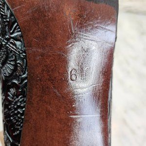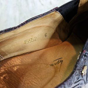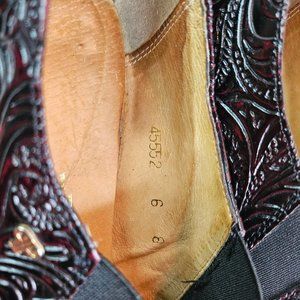 Check out these Vintage Pertti Palmroth Women's Burgundy Leather Embossed Point Toe Ankle Boots are in great pre-owned condition, some wear on the insole but the leather upper and the outsole still in very great shape.