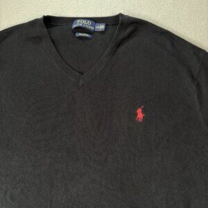 VTG Polo Ralph Lauren Mens L V-Neck Pima Cotton Sweater Black Preppy Minimalist