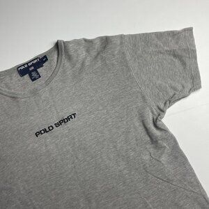 VTG Polo Sport Ralph Lauren Graphic Logo Shirt Size M Gray USA Flag (Stained)