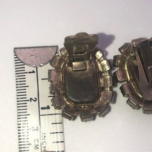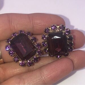 Vtg Purple Rhinestone Emerald Cut Centre Clip On Earrigs Unmarked 1.1”