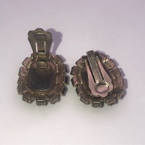 VTG Purple Rhinestone Emerald Cut Centre Clip On Earrigs Unmarked 1.1”