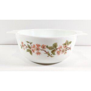 VTG Pyrex England Casserole Cherry Blossom White No Lid