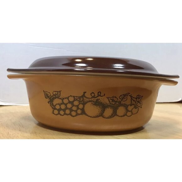 Pyrex OLD ORCHARD Oval CASSEROLE DISH w/ LID