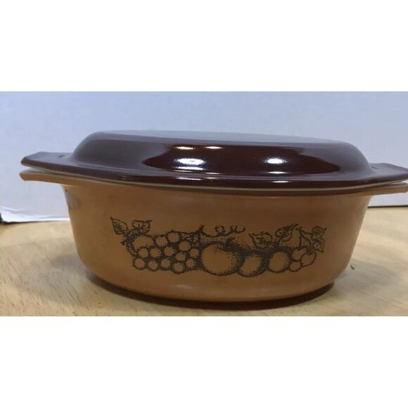 VTG Pyrex OLD ORCHARD 1 1/2 QT Oval CASSEROLE DISH 043 w/ LID 943 Corning USA