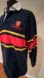 Size small very good used vintage condition Queens University rugby polo. Navy shirt with red/yellow stripes and white collar. Barbarian brand rugby wear casual light weight fabric.