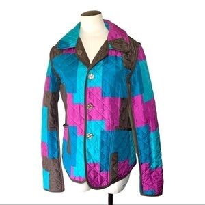 VTG Quilted Jacket 100% Silk Women Sz M Reversible Brown Multicolor Light Coat