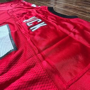 Vintage Michael Vick (Red) Atlanta Falcons NFL jersey. Logo, number, and name are all screen printed onto the jersey. Cleaned and disinfected. Picked up as part of a sports memorabilia lot from a local yard sale.
